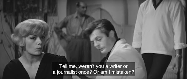 A small throughline in the film involves Marcello's artistic and professional aspirations. Apparently, Marcello is an incredibly talented writer, a fact known by his colleagues, who often wonder why Marcello is wasting his time in the sewers of tabloid journalism. All of the intellectual conversations at the party seem to reawaken Marcello's loftier ambitions, and in the films intermezzo, essentially a brief middle chapter eye of the storm, Marcello attempts to write at a quiet seaside restaurant. However the waitress keeps playing music, Perez Prado's cha-cha, "Patricia," and Emma distracts and berates his absence to him over the phone...in calls he himself initiates.